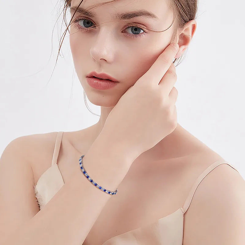 Pulsera estilo Tennis con zirconias azules y blancas.
