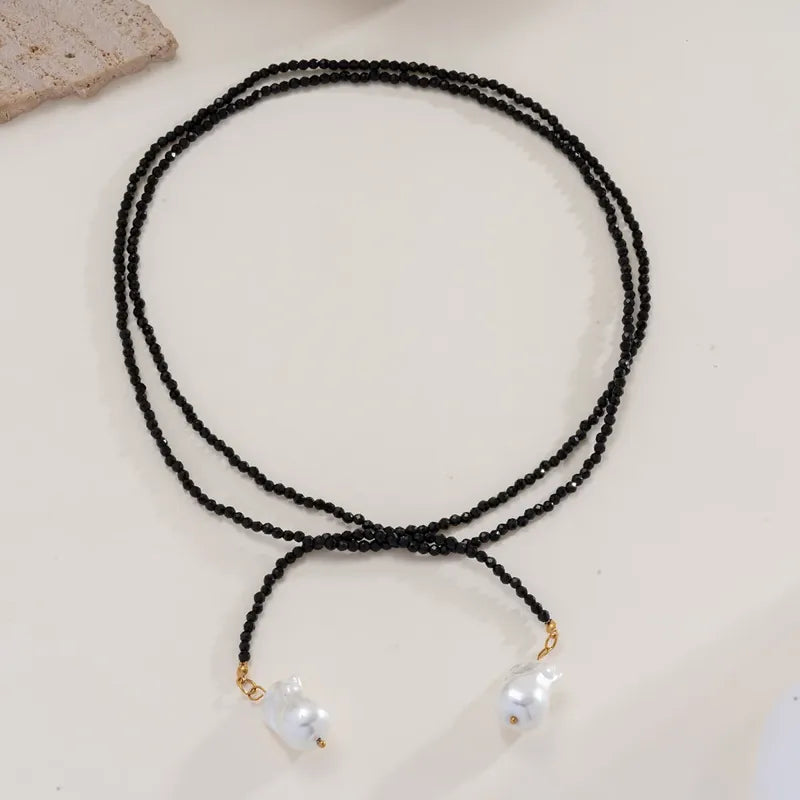 Una pieza muy versátil. Hecha de piedras con dos perlas colgantes.